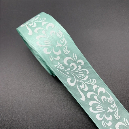 Saténová stuha s potlačou mentolovo-biela 25mm