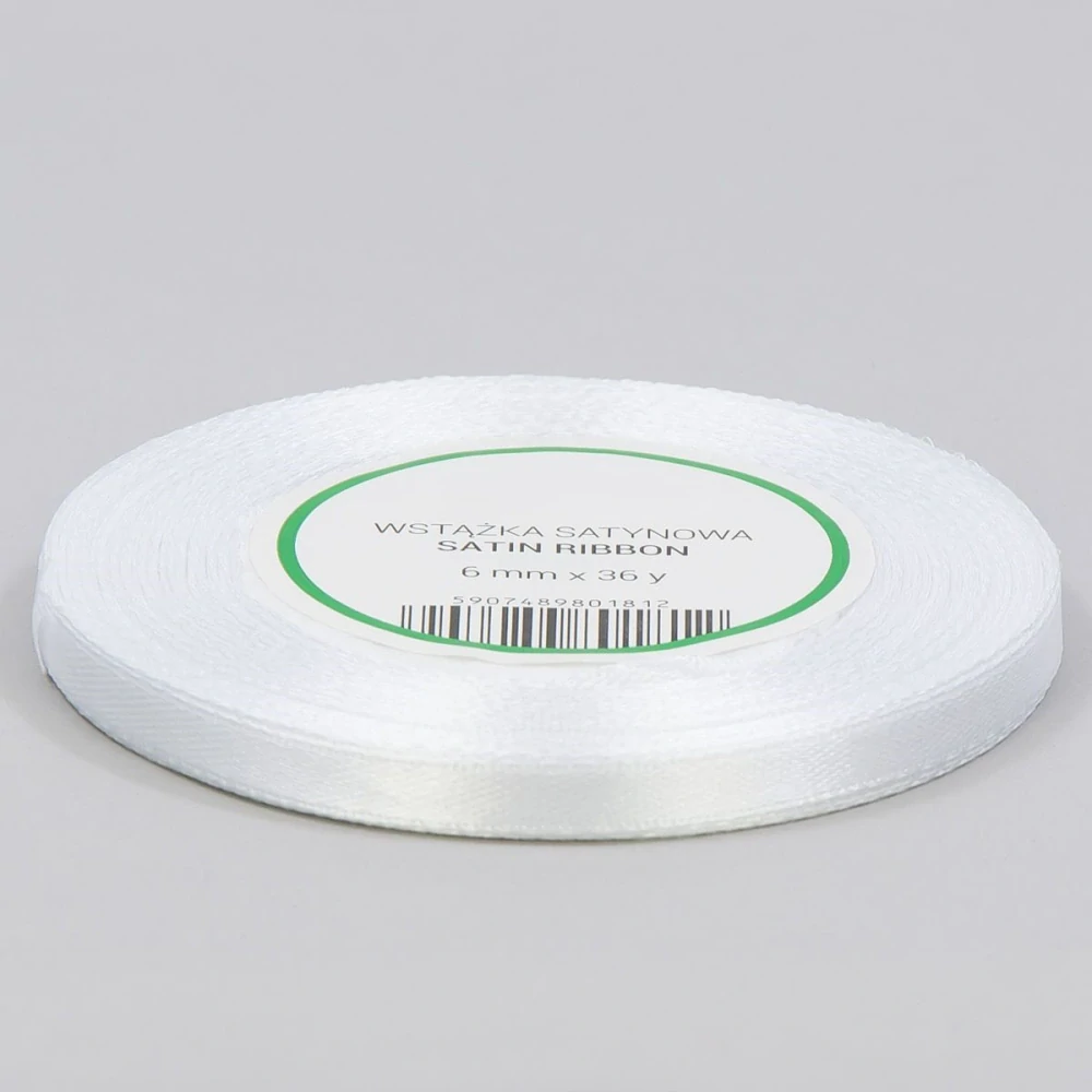 Saténová stuha biela v šírke 6mm a návine 32 metrov.