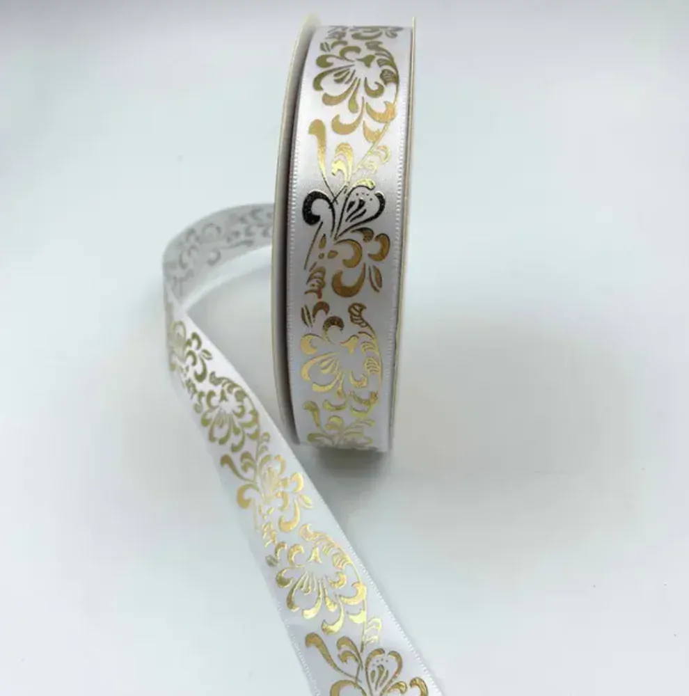 Saténová stuha s potlačou bielo zlatá 25mmNie je skladom3,00 EUR/ ks
