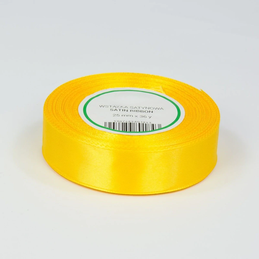 Saténová stuha žltá v šírke 25mm a dĺžke 32m.