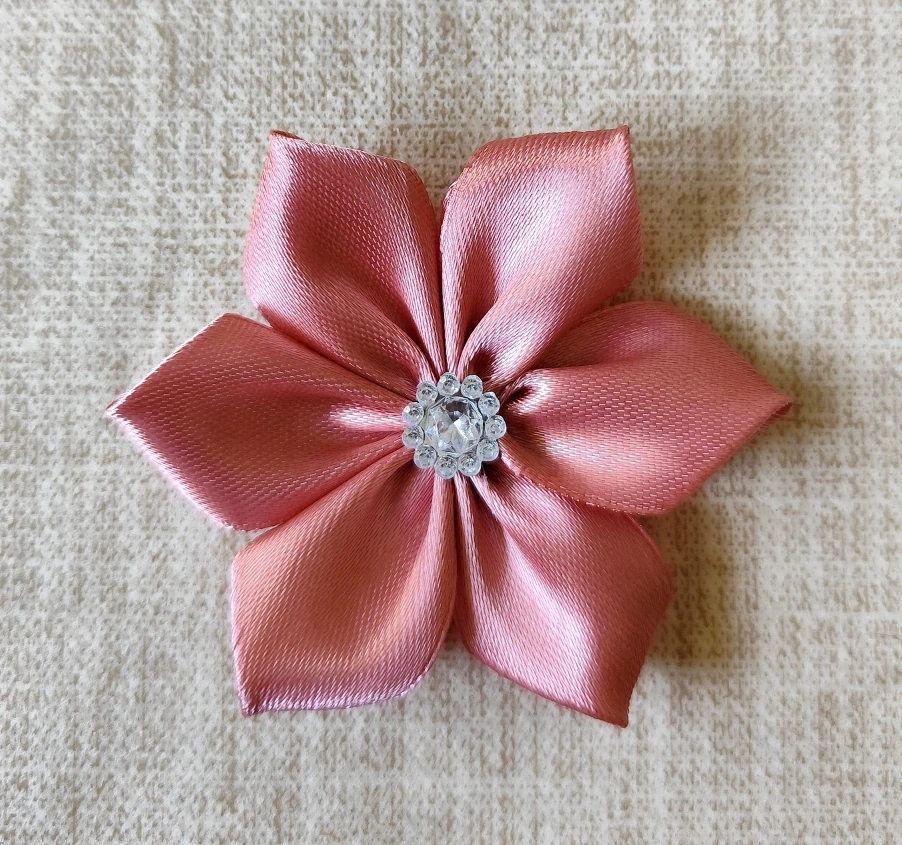 - Saténový kvet ružový zlatý s kamienkom 7,5cm