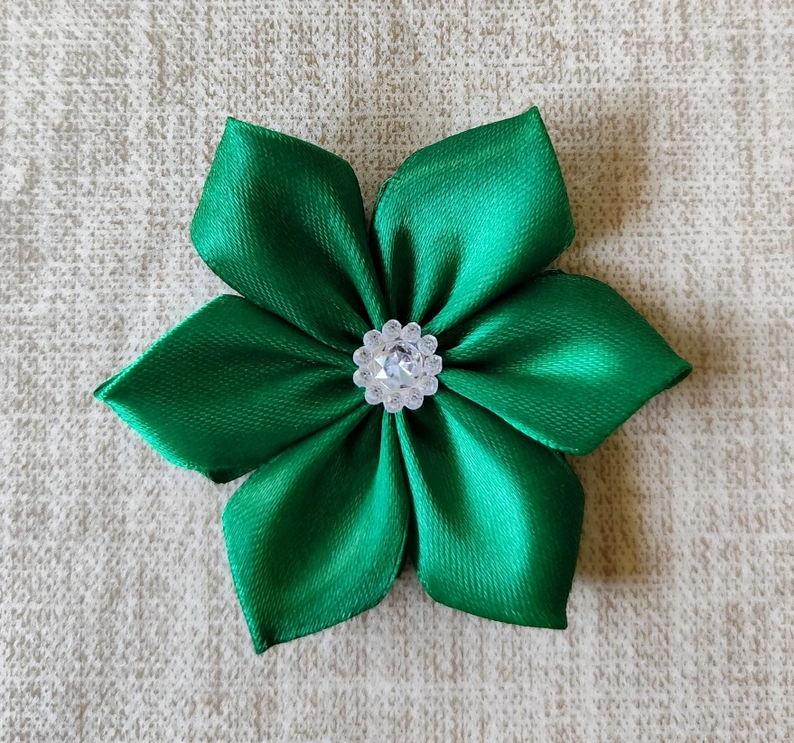 Saténový kvet smaragdový s kamienkom 7,5cm
