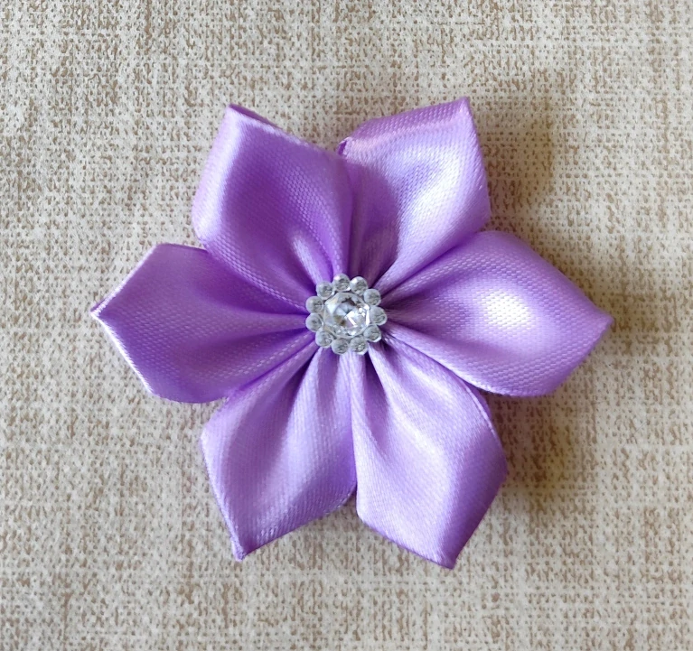Saténový kvet svetlofialový s kamienkom 7,5cm
