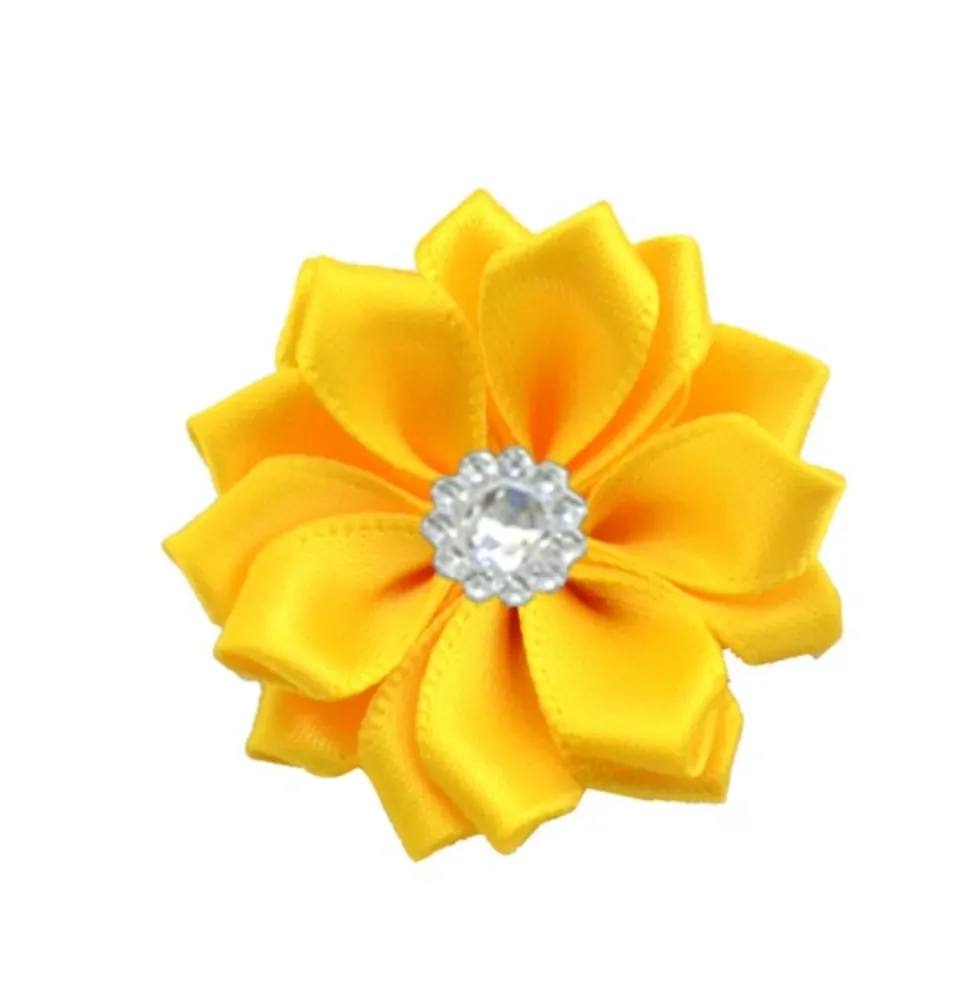 Saténový kvet žltý s kamienkom v priemere 4,5cm.