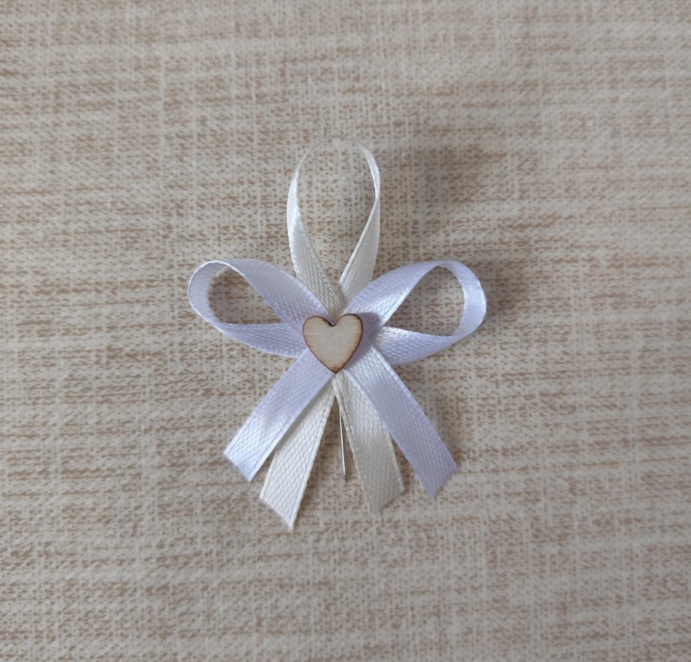 Handmade svadobné pierko krémovo biele s dreveným srdiečkom.